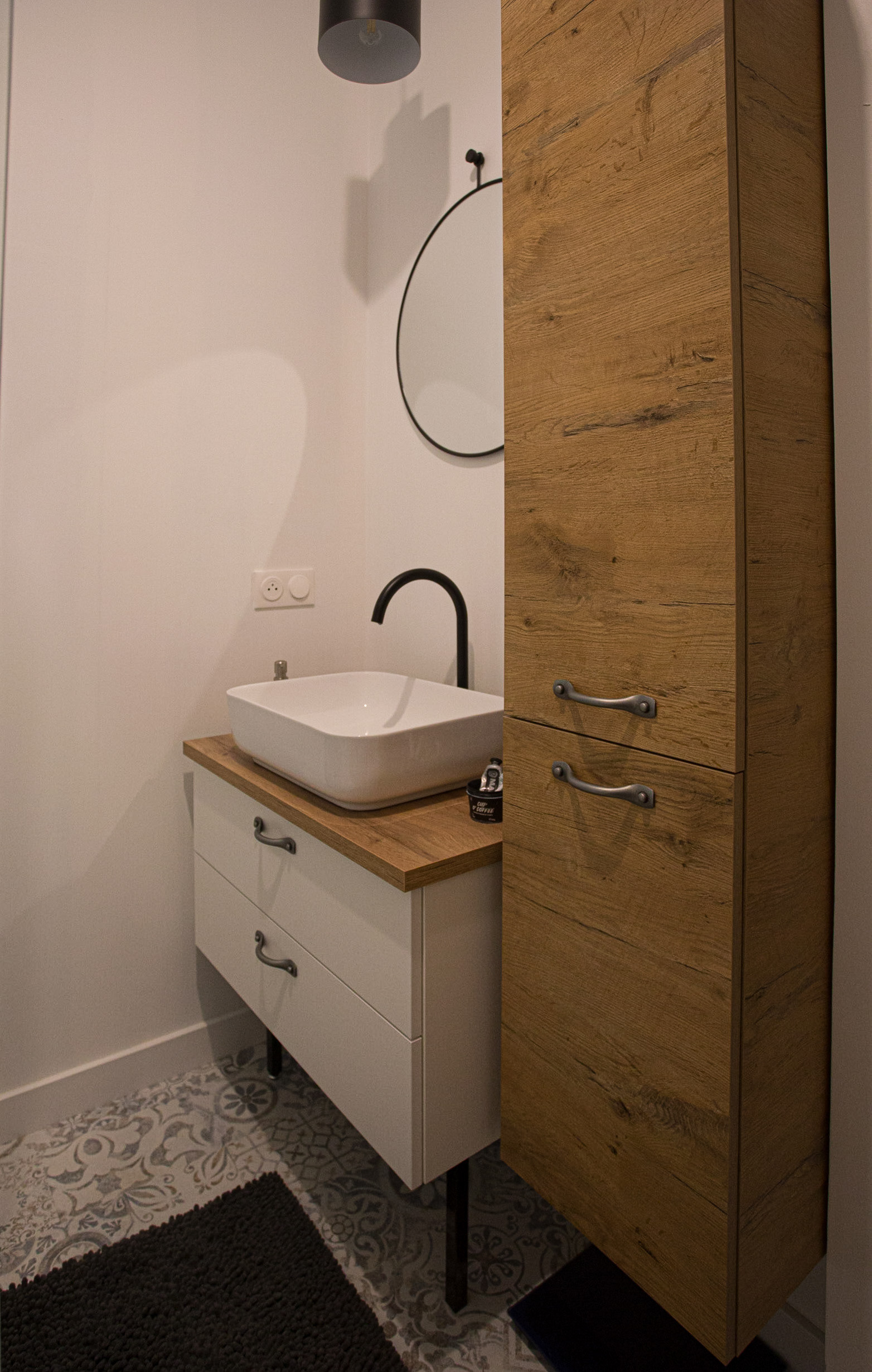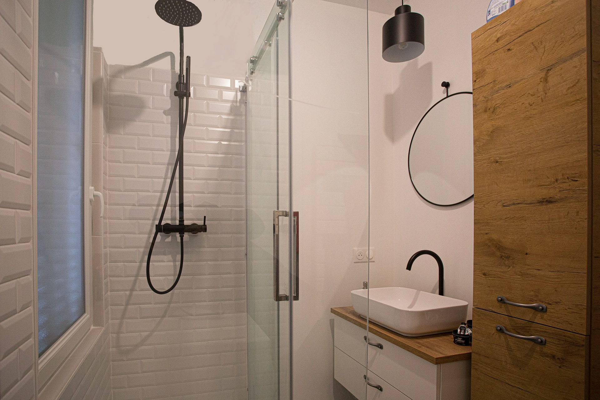 Salle de bain blanche et bois